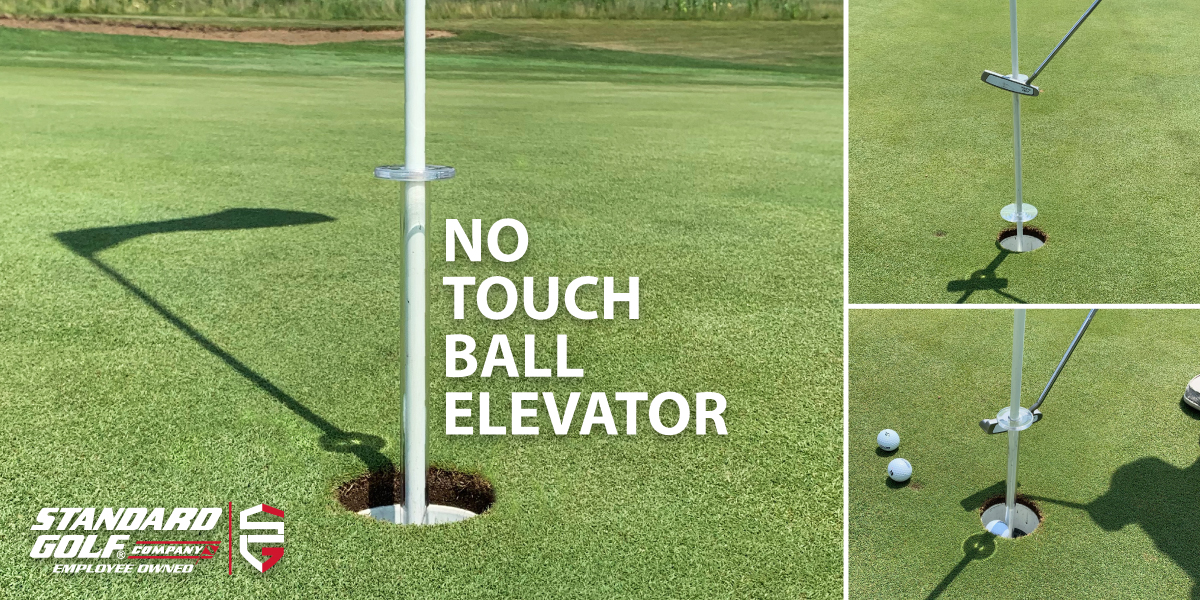 Ball Elevators : The no touch ball elevator is made from a clear polycarbonate material, measures 12 inches (30.5 cm) in length and easily slides over the top of any 1/2″ (1.27 cm) flagstick.