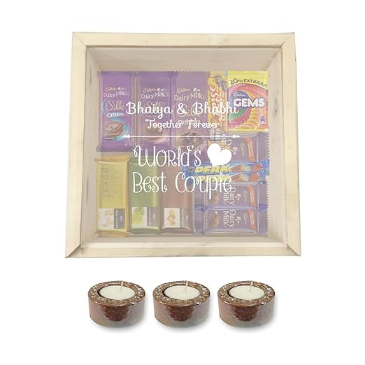 Giftsmate Diwali Gifts For Brother Bhabhi Chocolate Gift Hampers Worlds Best Couple With 3 Glazed Metallic Candles Diyas Engraved Wooden Gift Box Cadbury Chocolates Small Amazon In Grocery Gourmet Foods - And, the best range of deepavali gifts online is here at giftalove.com for you to explore.