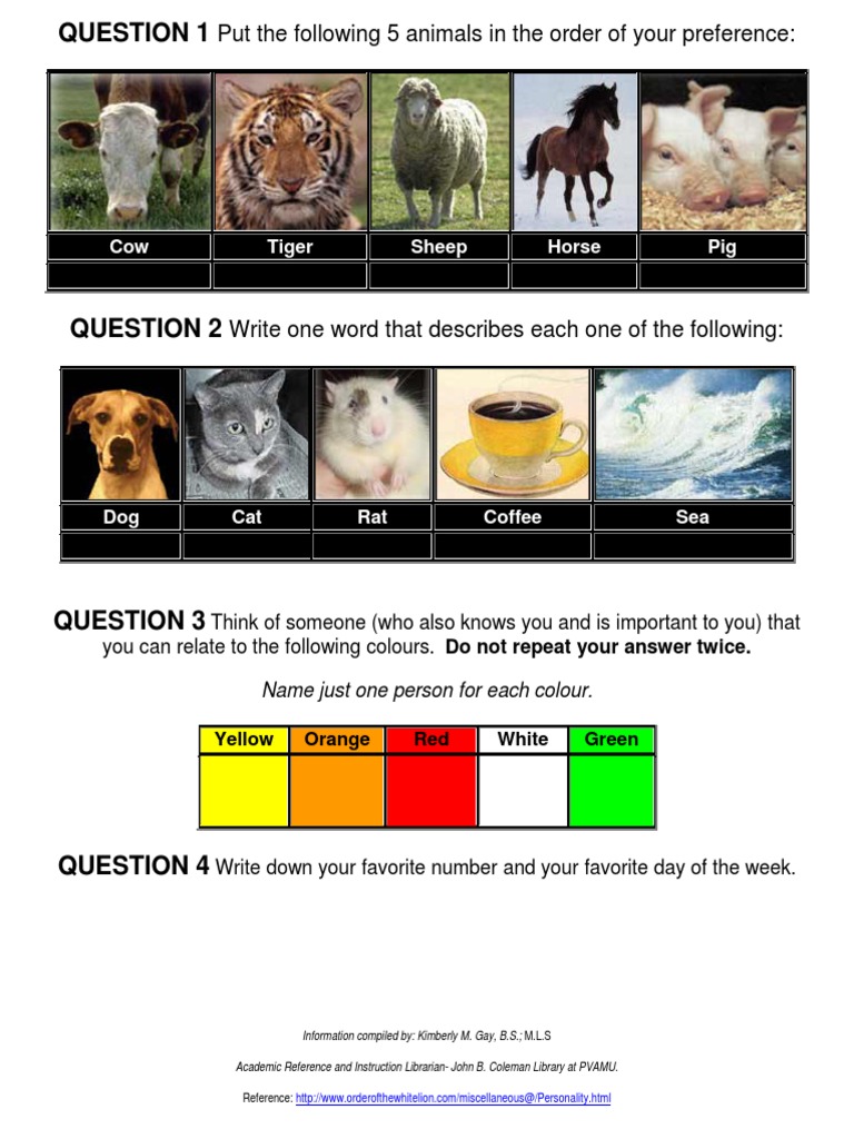 Cow Tiger Sheep Horse Pig Personality Test Cow Tiger Sheep Horse Pig Personality Test - This is a personality test.