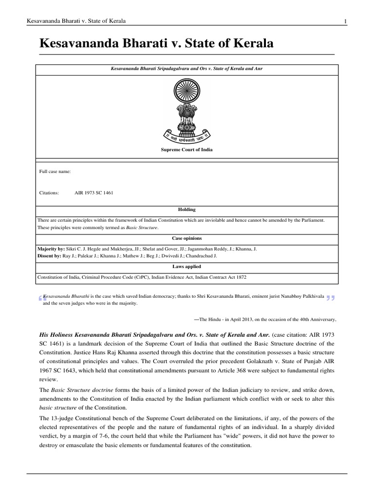 Kesavananda Case Judgement Pdf Kesavananda Case Judgement Pdf : The kesavananda bharati judgement or his holiness kesavananda bharati sripadagalvaru and ors.