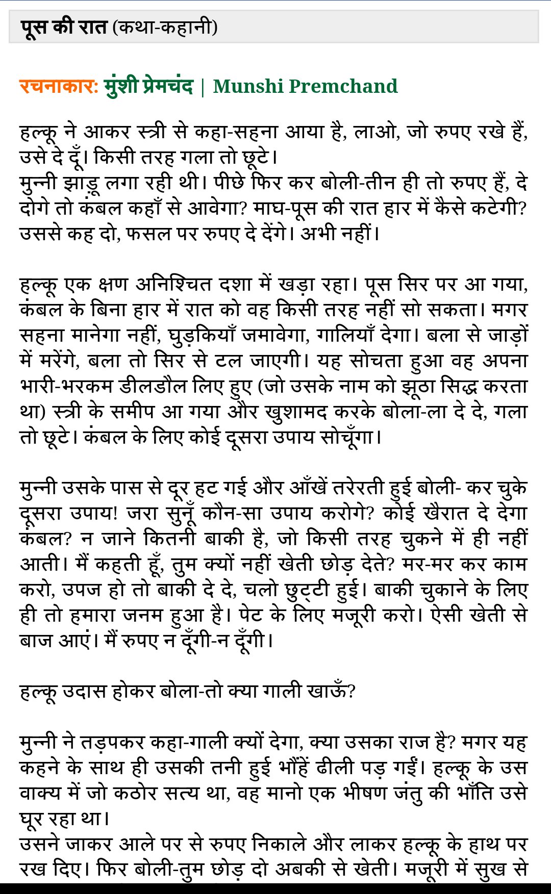 Poos Ki Raat Summary In English Poos Ki Raat Summary In English - His works focus on social issues and have been.